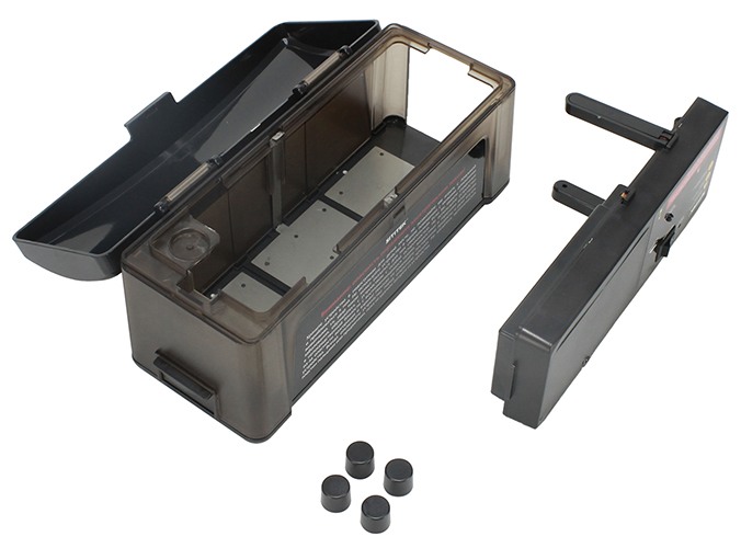 - Отсек для приманки расположен с наружной стороны корпуса. Это очень удобно, т.к. для размещения приманки не нужно выключать ловушку и открывать крышку. Приманку необходимо довольно часто обновлять, поэтому отдельный отсек для неё — очень удачное конструкторское решение.